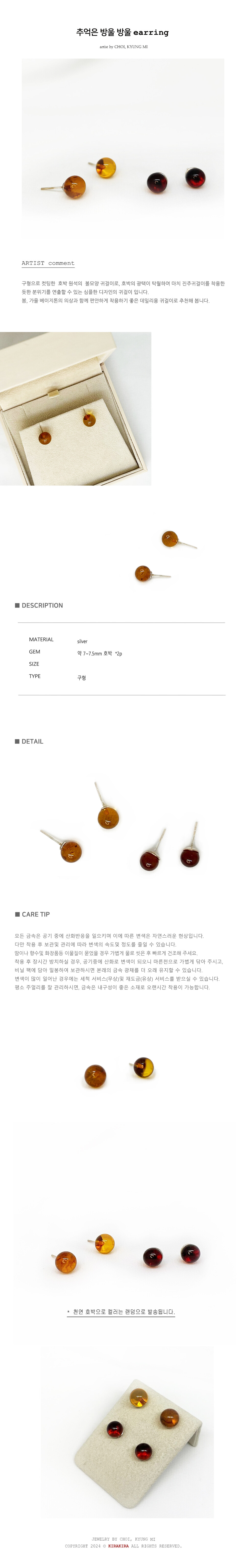 호박 원형귀걸이