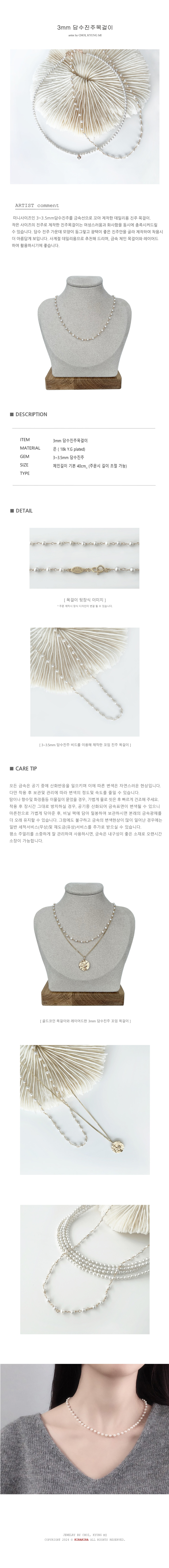 3~3.5mm 미니 담수진주 꼬임목걸이