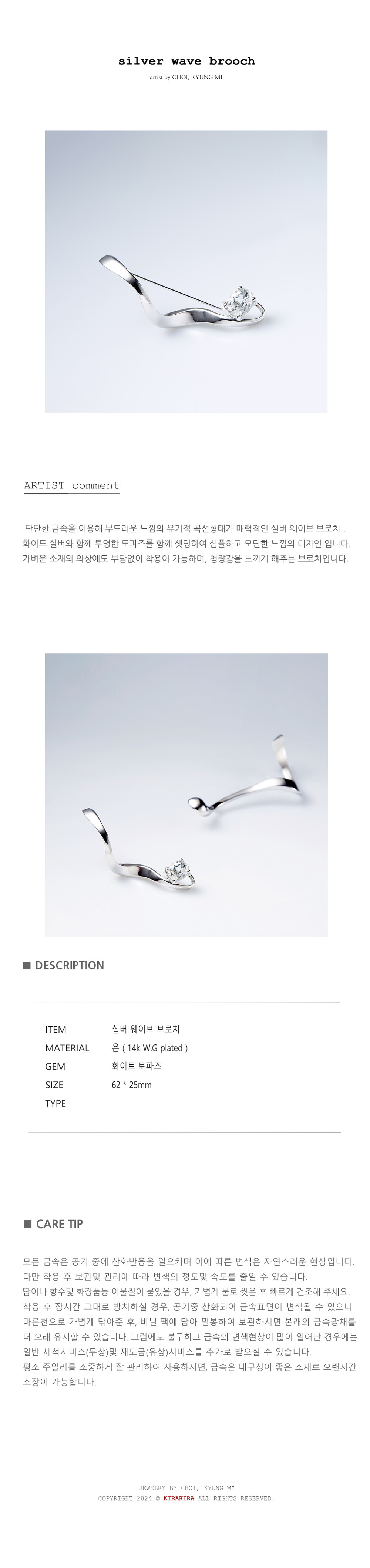 실버 웨이브 브로치