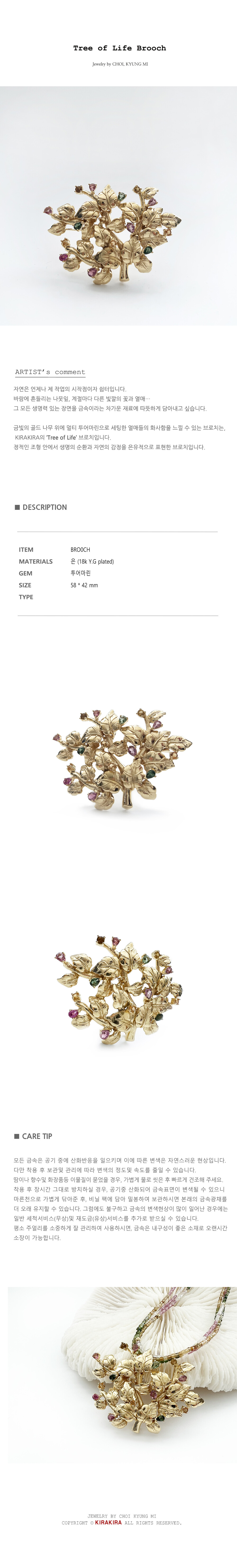 멀티 투어마린으로 화사하게 세팅 된 금빛 나무 브로치와 펜던트로 활용해 보세요!